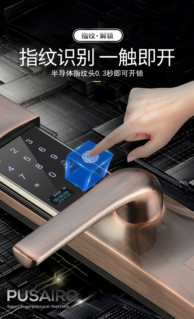 道真滑盖指纹锁家用防盗门